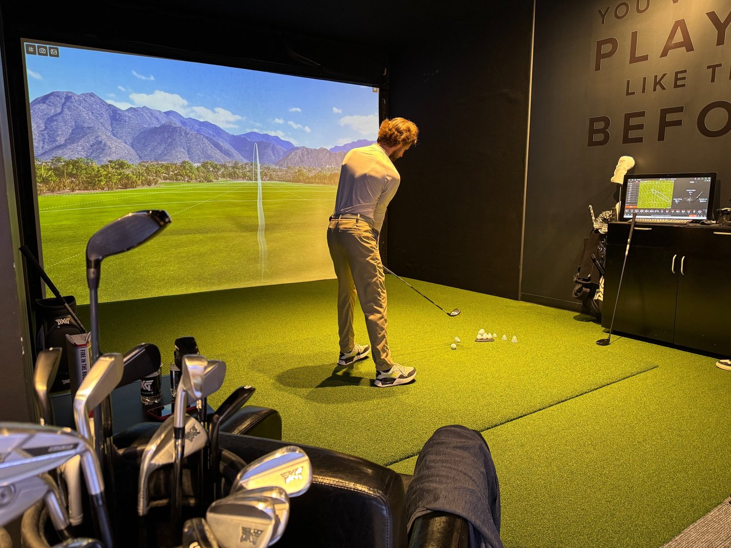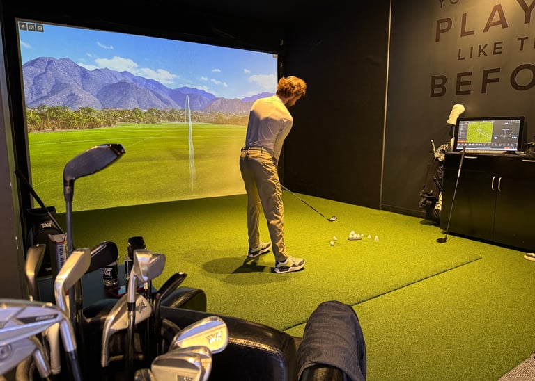 Turime galimybę treniruoti „Golfisto kambario“ simuliatoriuje, naudodami „Trackman“ duomenis ir vaizdo įrašus, kurie leidžia tiksliai matyti, kas vyksta Jūsų svingo metu.