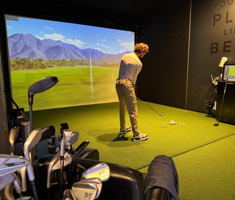 Turime galimybę treniruoti „Golfisto kambario“ simuliatoriuje, naudodami „Trackman“ duomenis ir vaizdo įrašus, kurie leidžia tiksliai matyti, kas vyksta Jūsų svingo metu.